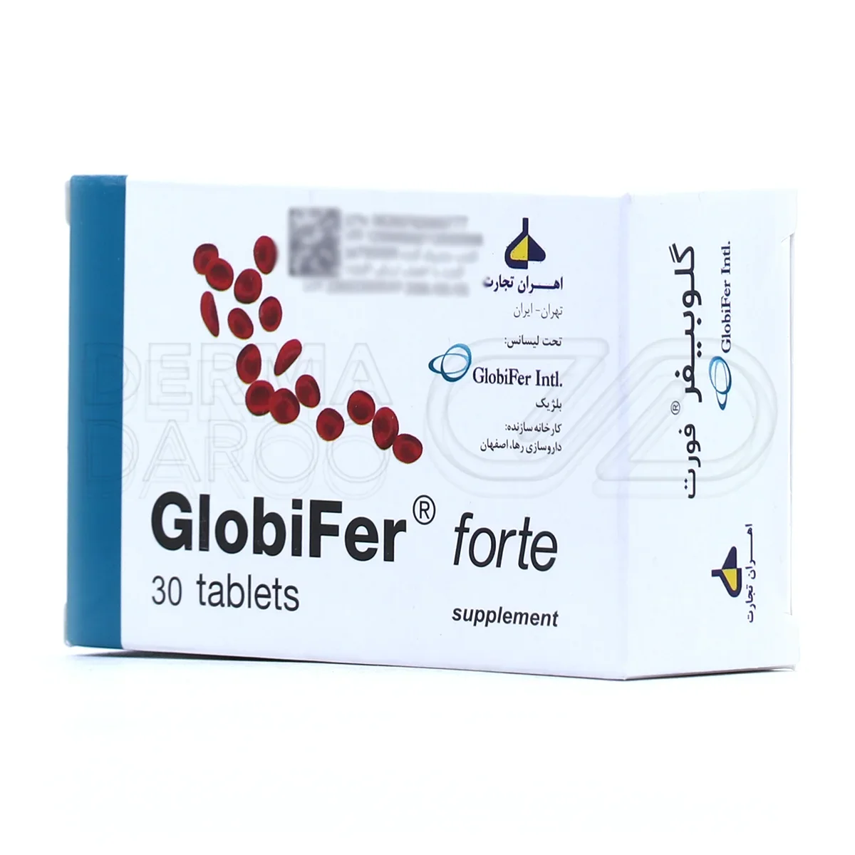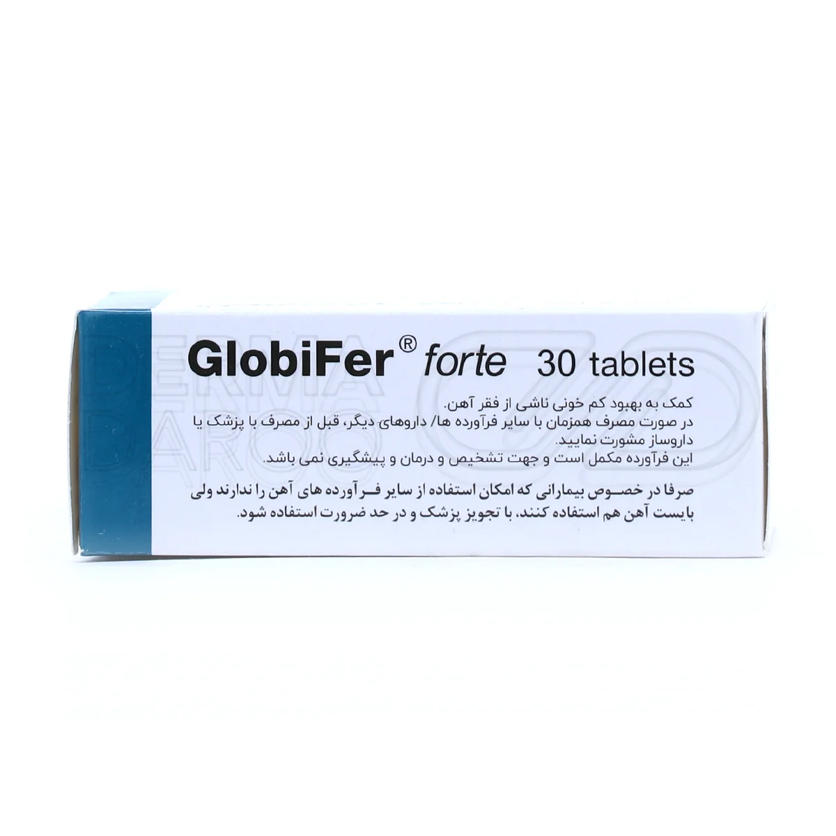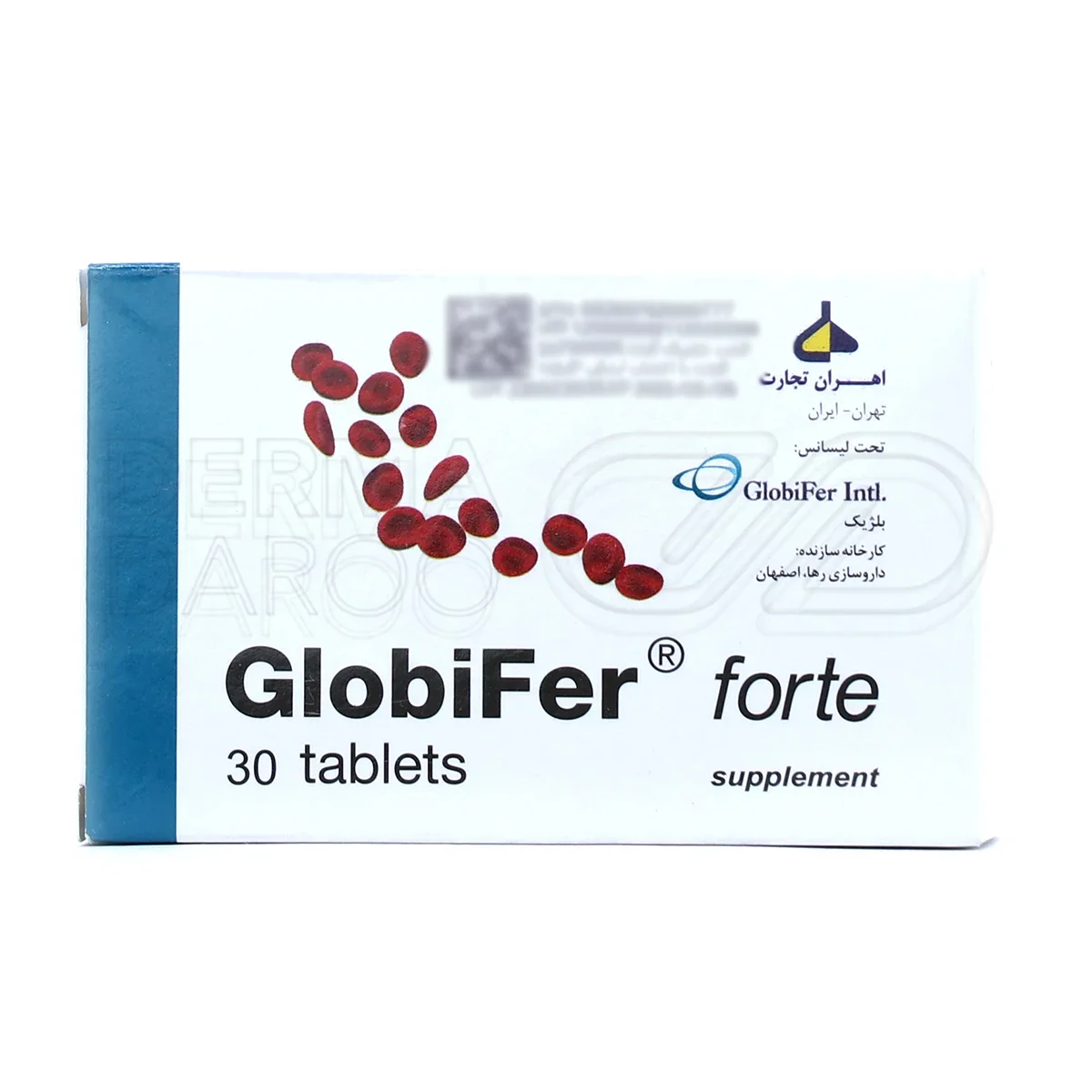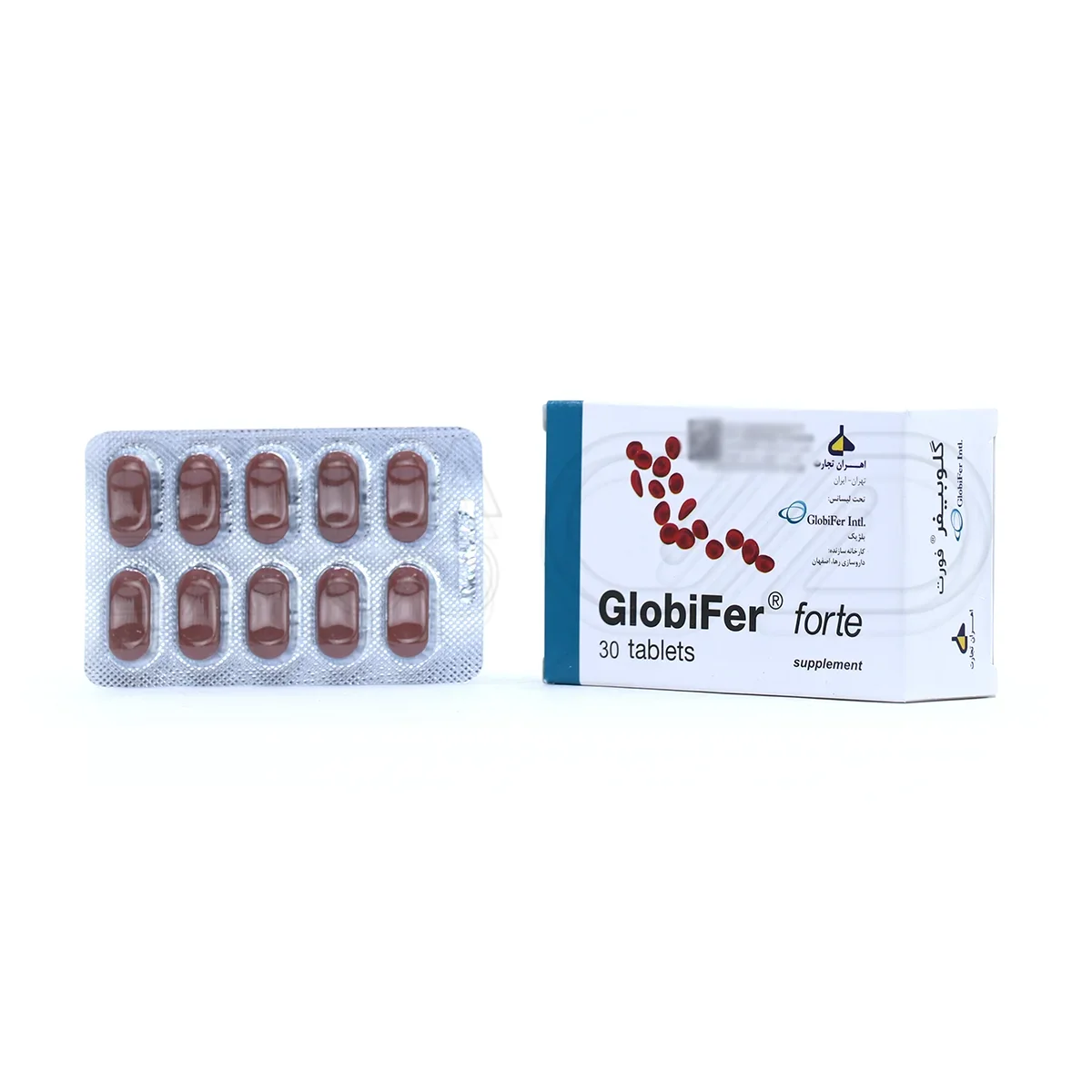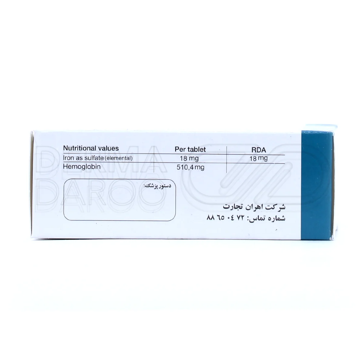 قرص گلوبیفر فورت اهران تجارت 18 میلی گرم آهن سولفات برای رفع کم خونی و تقویت جذب آهن