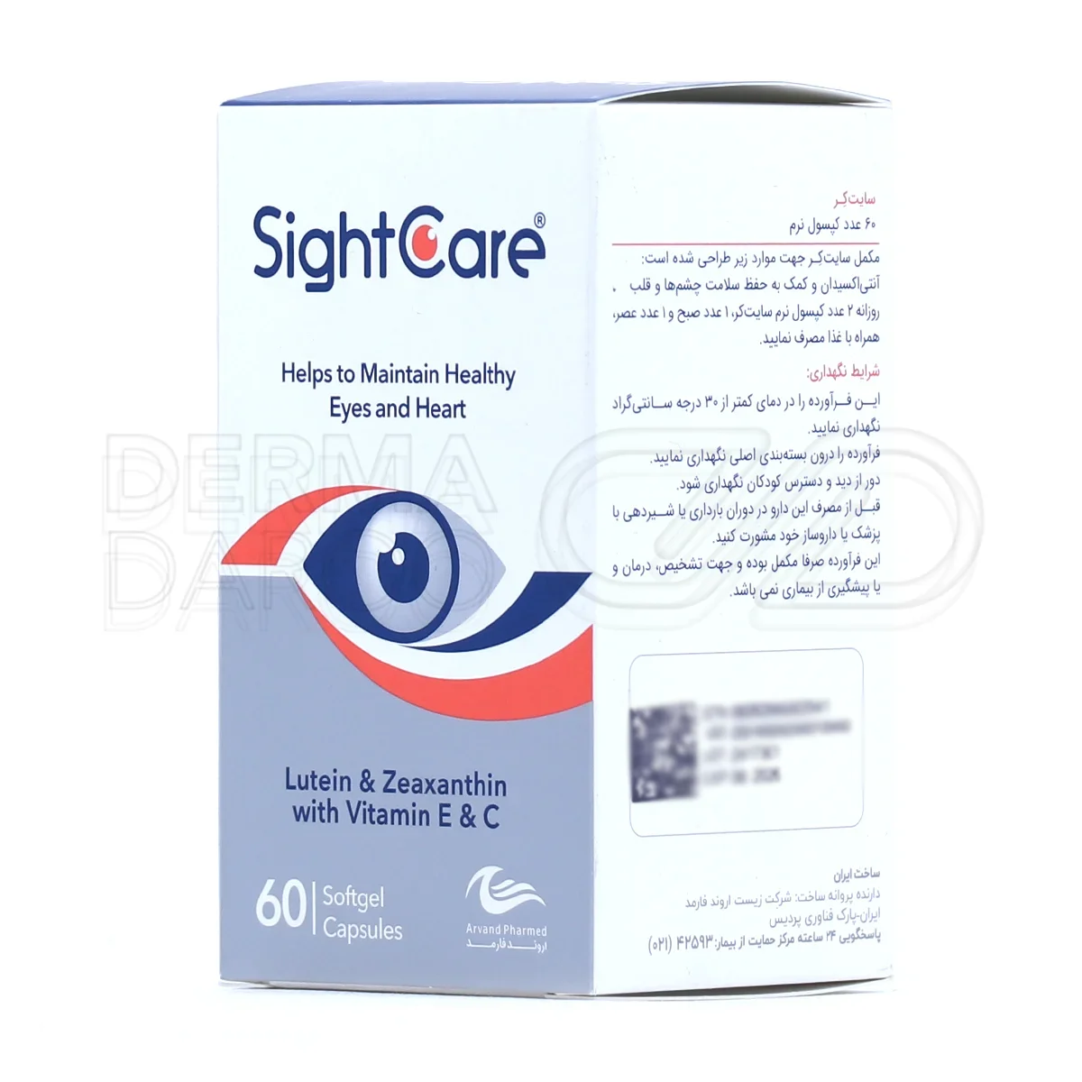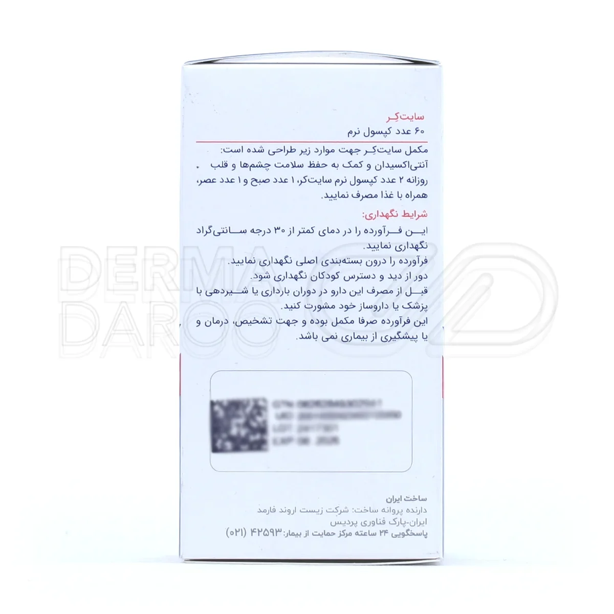 کپسول سایت کر اروند فارمد 60 عددی با لوتئین و زیگزانتین برای تقویت بینایی، محافظت از چشم و سلامت قلب با آنتی اکسیدان ها