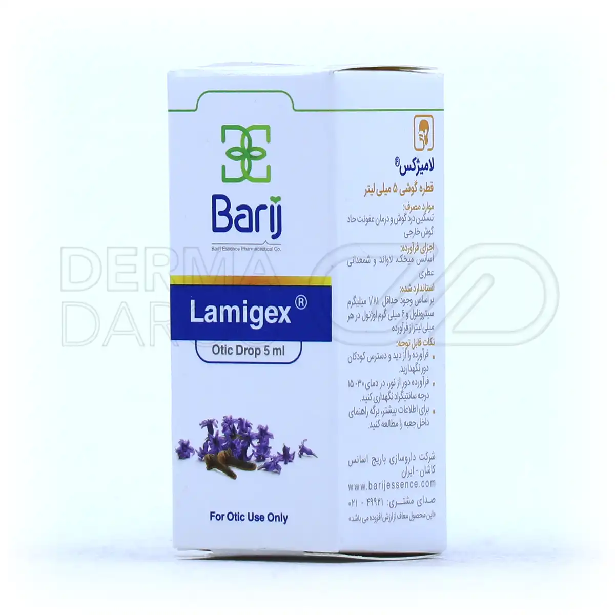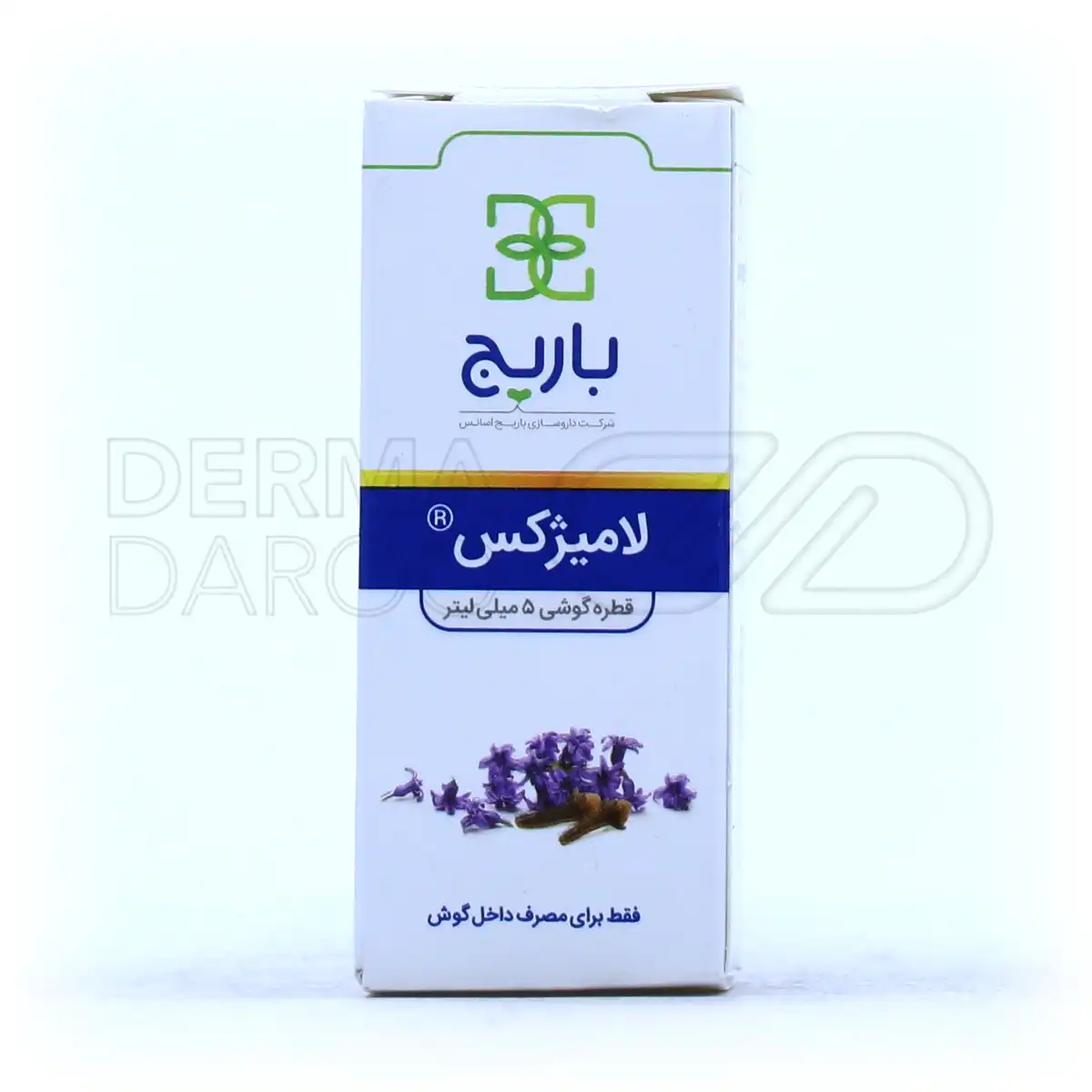 قطره لامیژکس باریج اسانس از گیاهان کاملا دارویی مانند گیاهان شمعدانی عطری، میخک و اسطوخودوس تشکیل شده و خاصیت ضدعفونی برای التهاب و بیماری گوش دارد. این قطره برای درمان عفونت حاد گوش خارجی استفاده میشود.