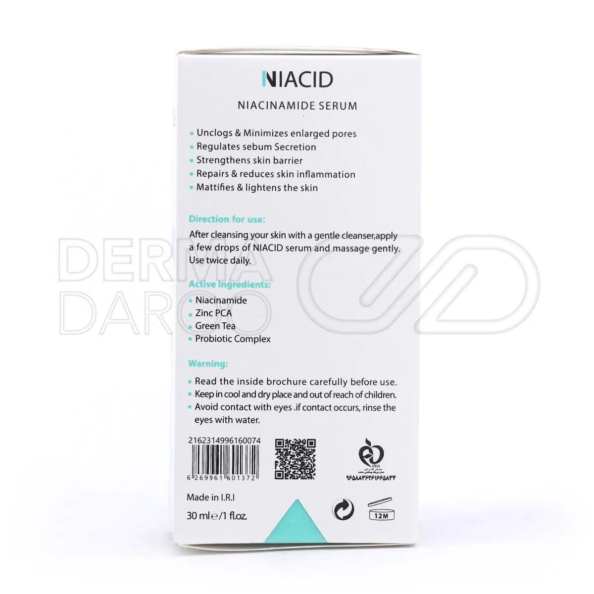سرم نیاسینامید و زینک NIACID درمالیفت، ضد جوش و کنترل چربی پوست