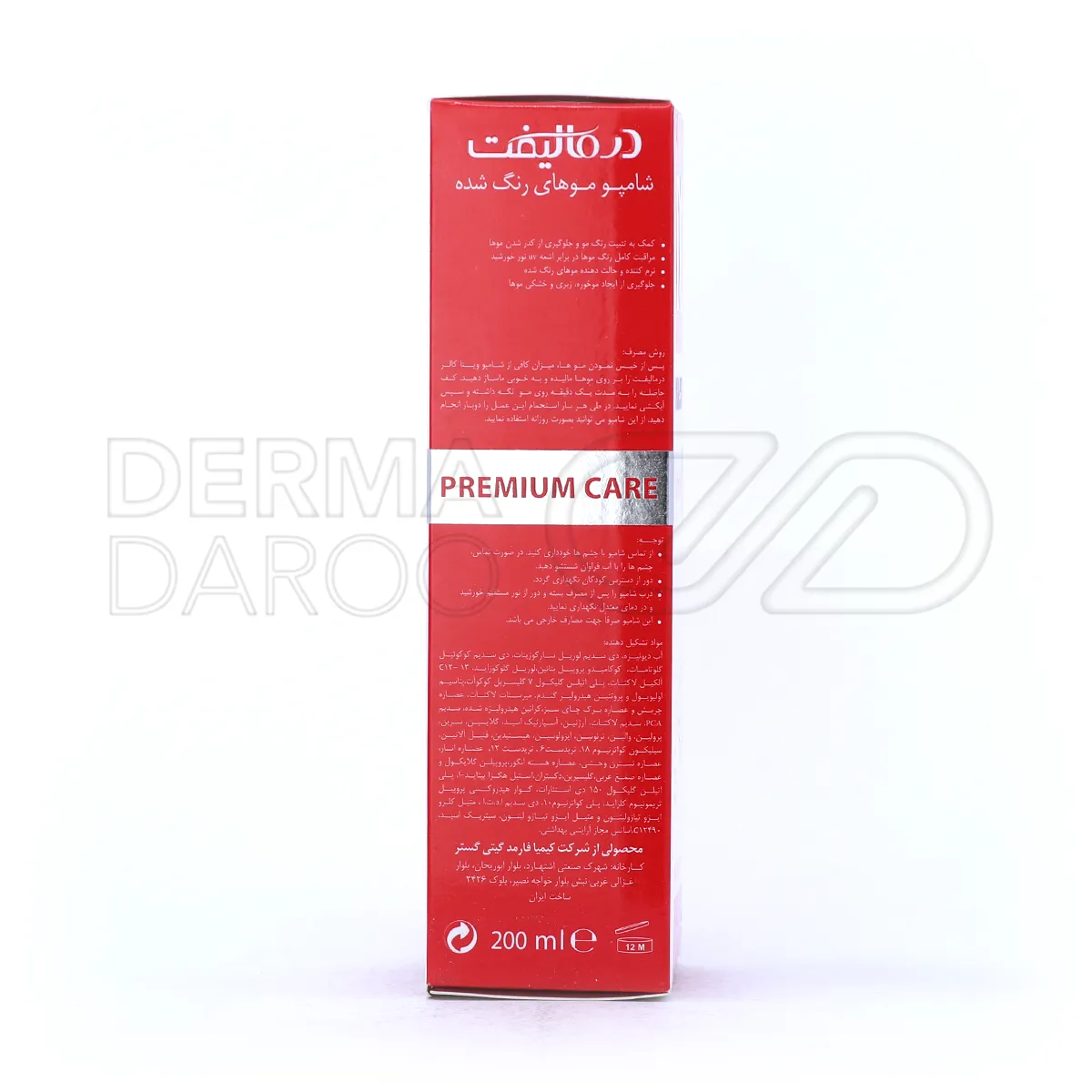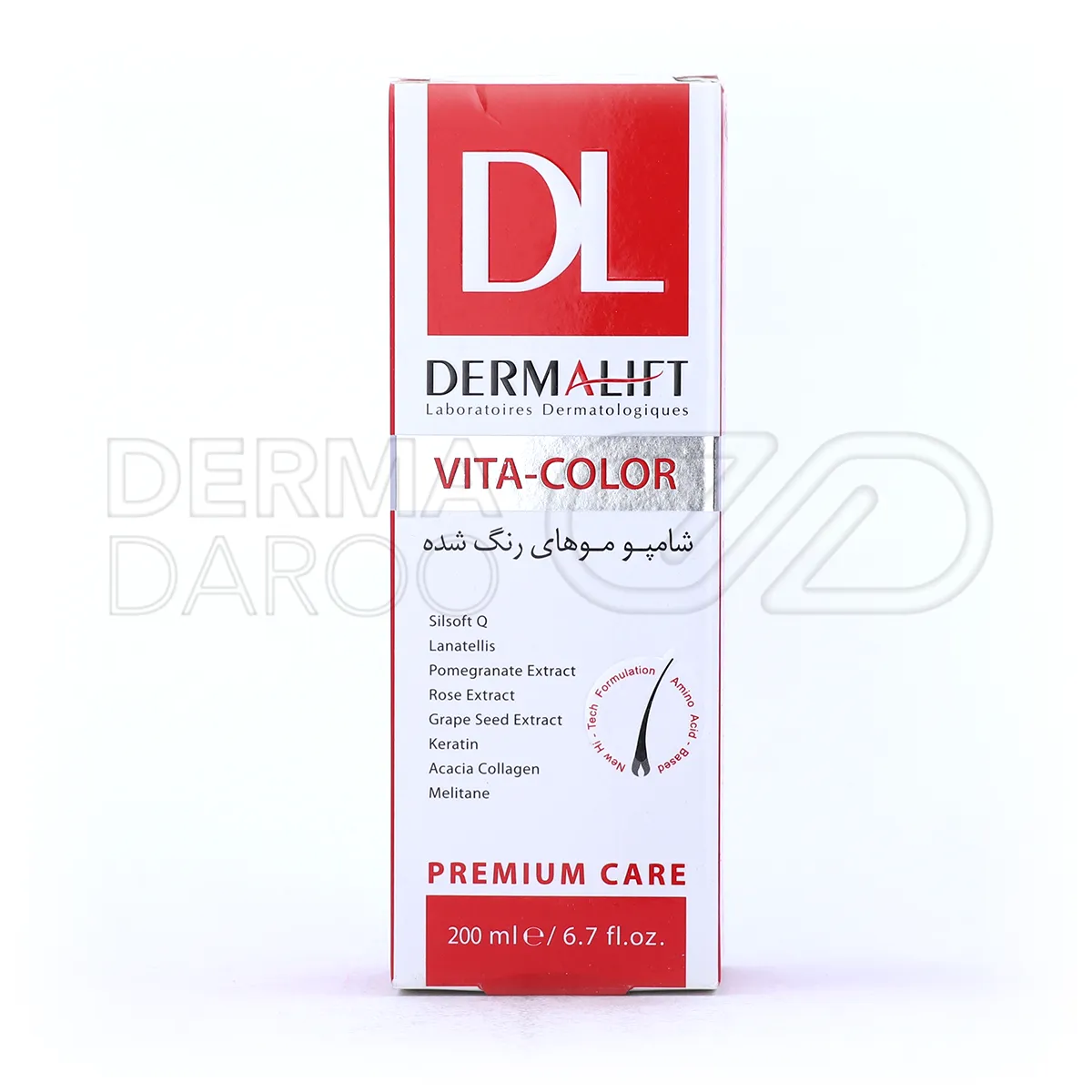 شامپو موهای رنگ شده درمالیفت مدل Vita-Color مناسب افراد دارای موهای خشک و رنگ شده است. این شامپو علاوه بر کمک به تثبیت و محافظت از رنگ موها، سبب افزایش نرمی و لطافت موها و همچنین کاهش خشکی مو میشود.