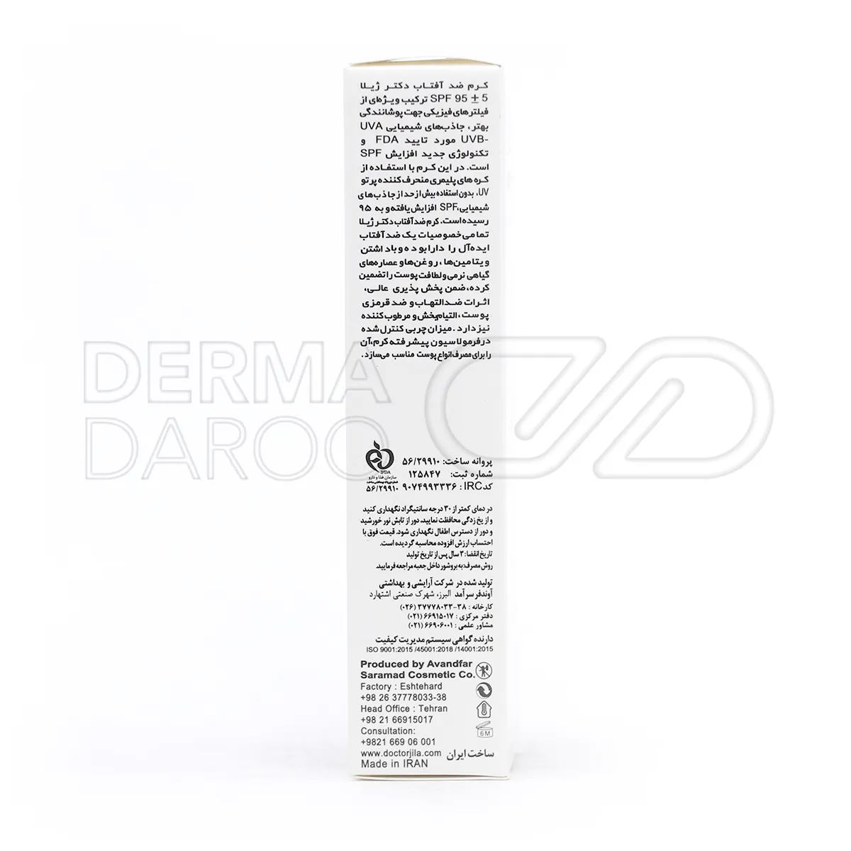 کرم ضد آفتاب SPF95 دکتر ژیلا، محافظ UVA و UVB، مرطوب کننده، ضد چروک
