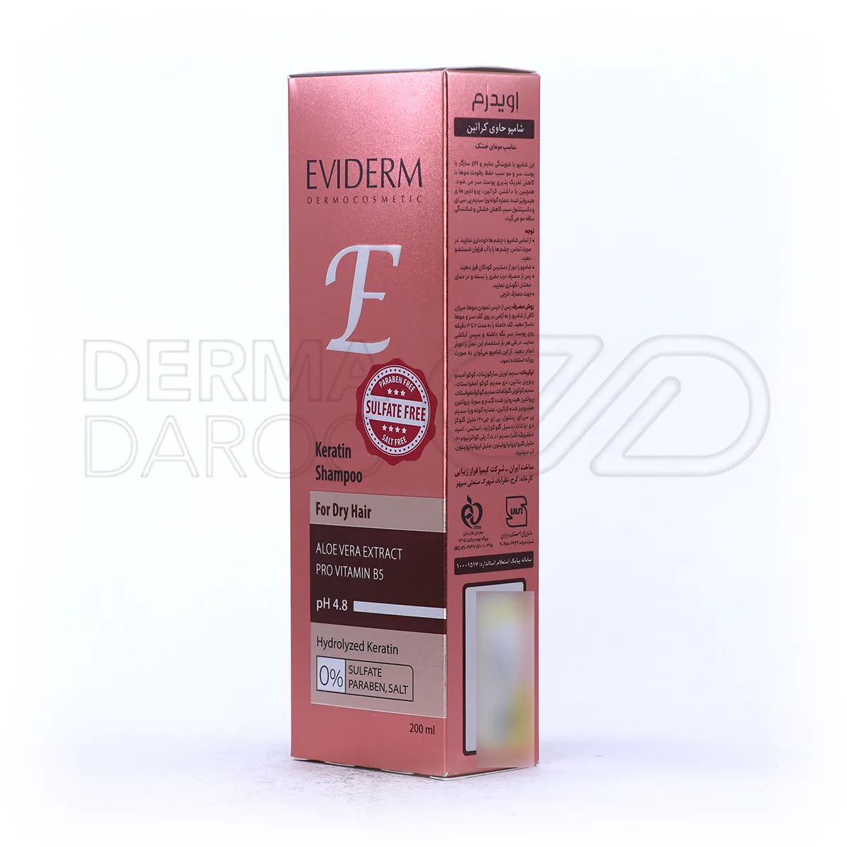 شامپو کراتینه اویدرم، آبرسان موهای خشک، فاقد سولفات، تقویت کننده و ضد موخوره