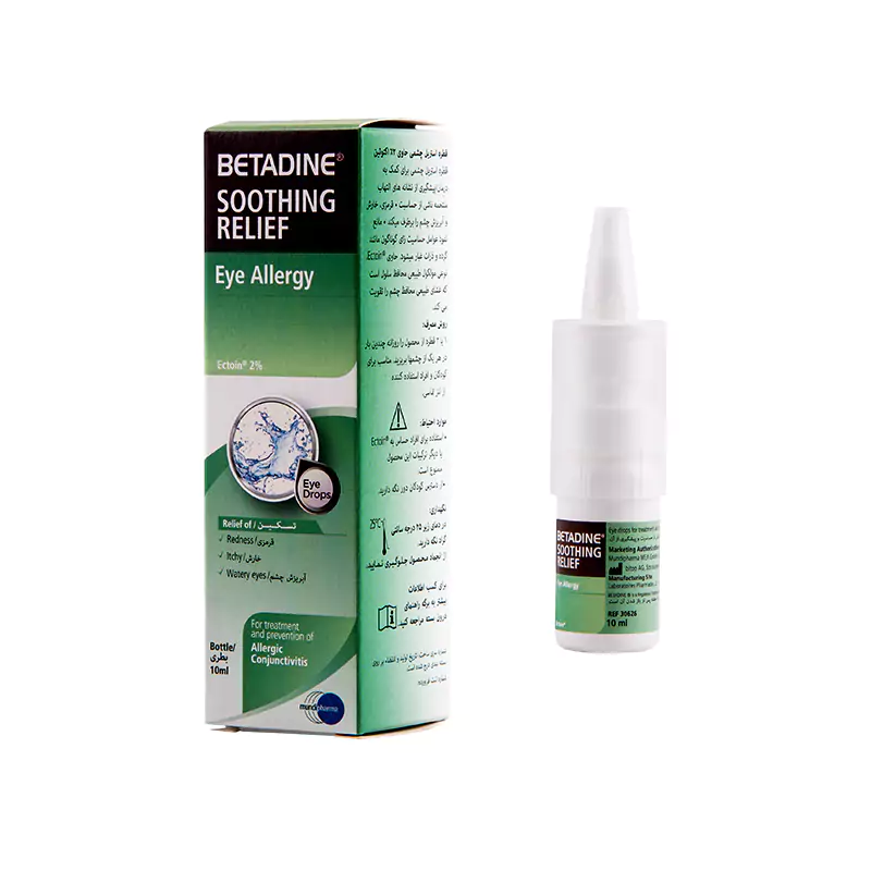 قطره تسکین حساسیت و آلرژی چشم بتادین محلول ایزوتونیک حاوی اکتوئین ۲%، یک مولکول منحصر به فرد و طبیعی است که با خاصیت آبدوستی بالایی که دارد، با جذب مولکولهای آب، یک لایه محافظ اکتوئین-آبی در سطح مخاط چشم ایجاد کرده، از تماس و نفوذ آلرژنها و عوامل بیماری زا به مخاط چشم جلوگیری کرده و با رطوبت رسانی قوی مخاط چشم، هرگونه خشکی چشم را نیز برطرف می کند. برای پیشگیری و درمان التهاب ملتحمه چشم، حساسیت و آلرژی های چشمی به کار رفته و با خاصیت محافظت کنندگی و ثبات غشای سلول، ملتحمه حساس چشم را در مقابل آسیب آلرژن ها و عوامل بیماریزا محافظت کرده و باعث ترمیم و بازسازی ملتحمه آسیب دیده چشم می شود.