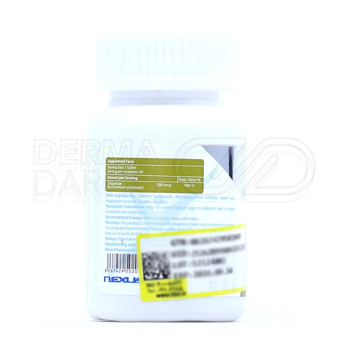 • حاوی ۲۰۰ میکروگرم کروم در هر قرص