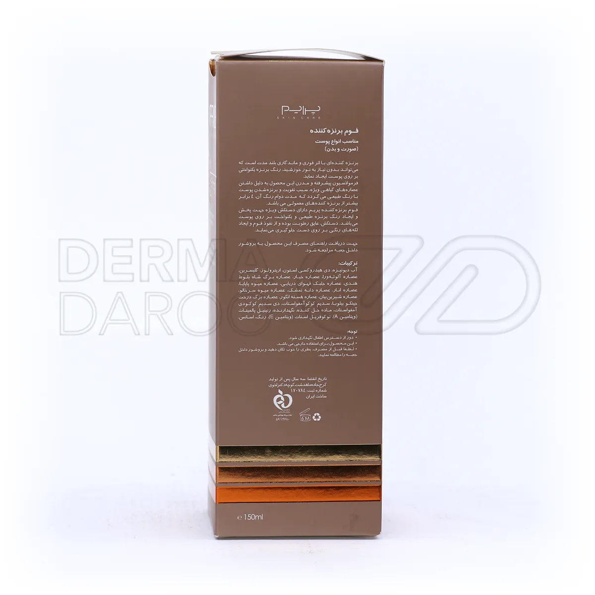 فوم برنزه کننده پرایم بدون نیاز به نور خورشید رنگ برنزه یکنواختی بر روی پوست ایجاد می کند.