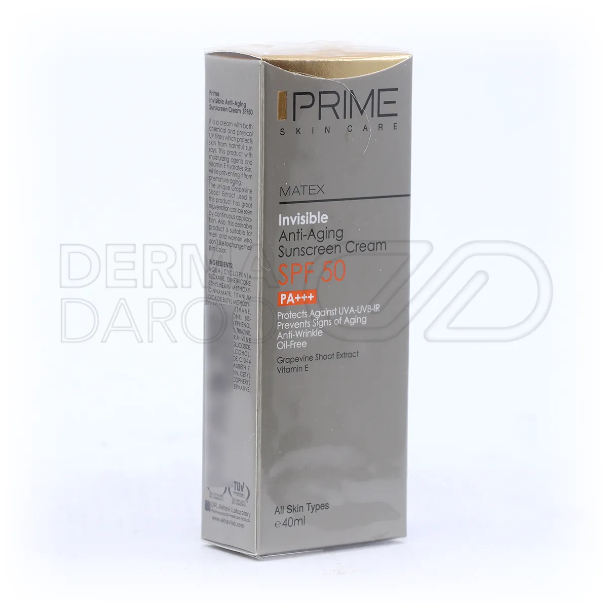 کرم ضد آفتاب فاقد چربی پرایم SPF50 با بافت سبک، از پوست در برابر UVA، UVB و IR محافظت کرده و لکها را کاهش میدهد