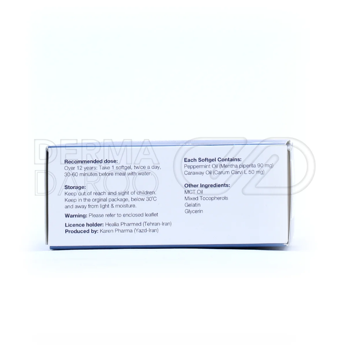 این محصول حاوی ترکیب گیاهی روغن نعنا فلفلی و روغن زیره است که اثرات این ترکیب باعث کمک به کاهش مشکلات گوارشی از جمله درد های شکمی و اسپاسم دستگاه گوارش و نفخ می شود.