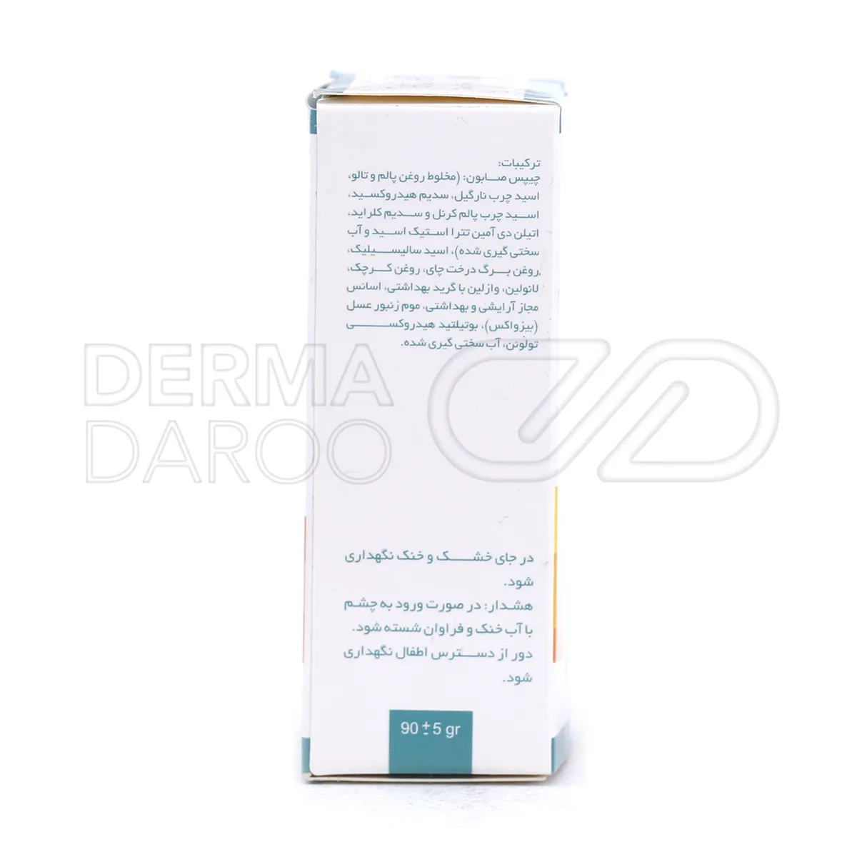 سالیسیلیک اسید، روغن درخت چای، تالو، روغن گیاهی، اسید چرب نارگیل، موم زنبور، سدیم هیدروکساید، عطر، افزودنیهای مجاز