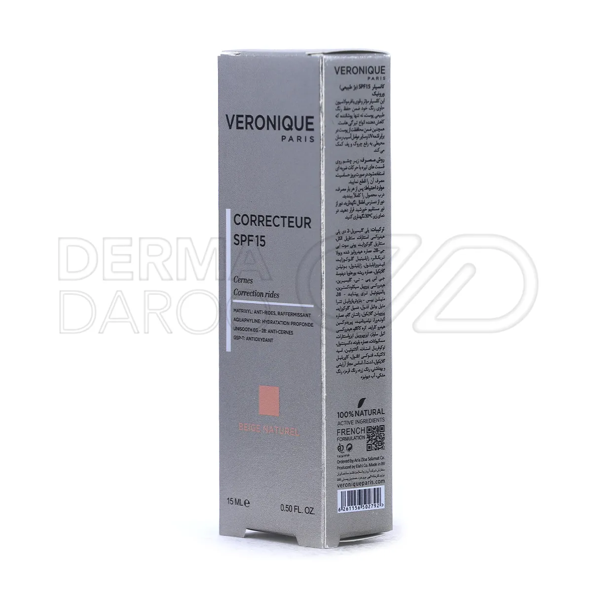 کانسیلر ورونیک SPF15 ضدچروک، پوشاننده تیرگی، محافظ UV، گیاهی، سه رنگ، فرمولاسیون فرانسه