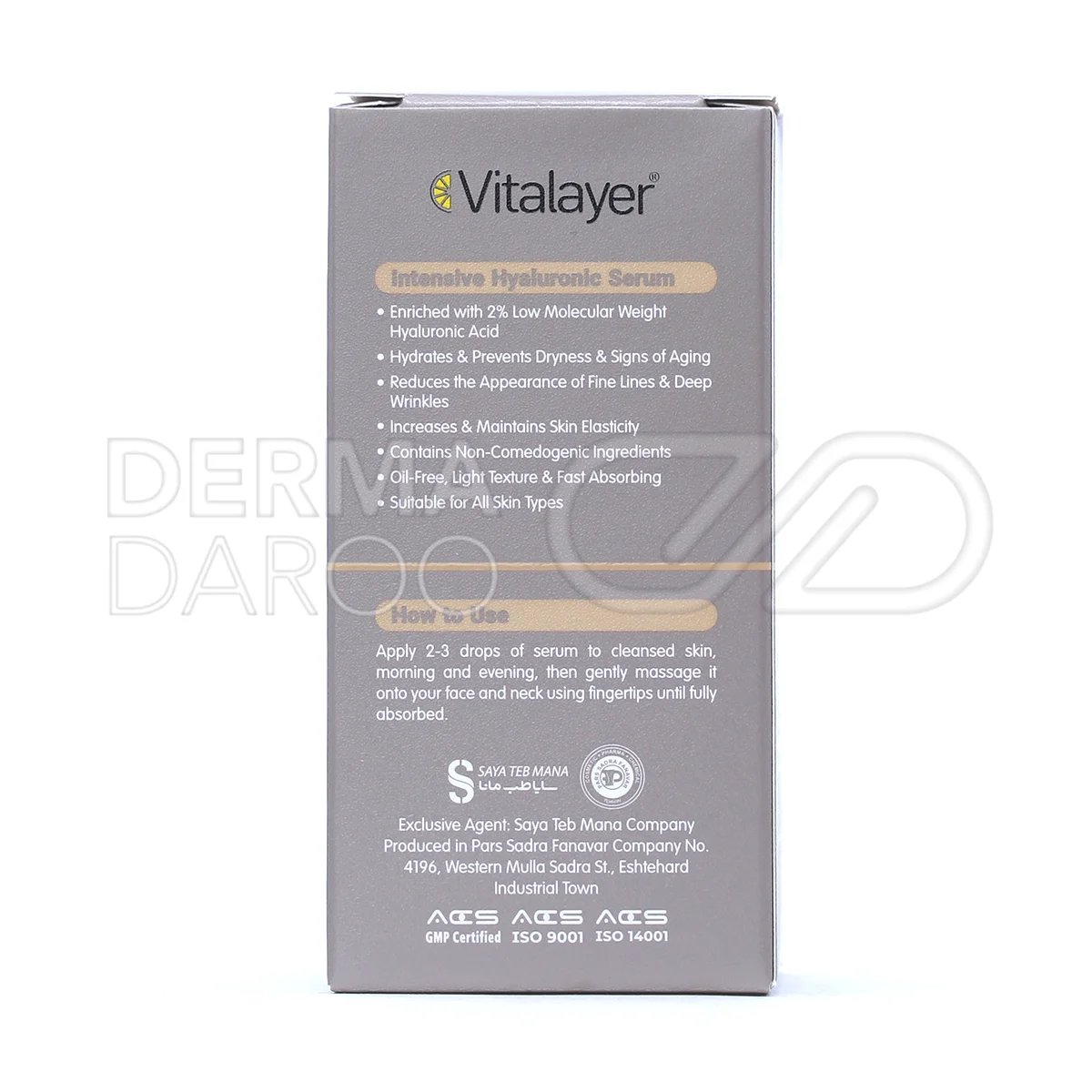 سرم هیالورونیک اسید ویتالیر یک آبرسان و مرطوبکننده قوی است که با ترکیبی از هیالورونیک اسید ریزمولکول و ویتامین ب۵ تولید شده است. این محصول نقش مؤثری در رفع خشکی، کاهش چینوچروکهای سطحی و عمیق و بازگرداندن خاصیت ارتجاعی پوست دارد. استفاده از این سرم بهخصوص برای تقویت روتین آبرسانی پوست و افزایش شادابی و لطافت آن توصیه میشود.
